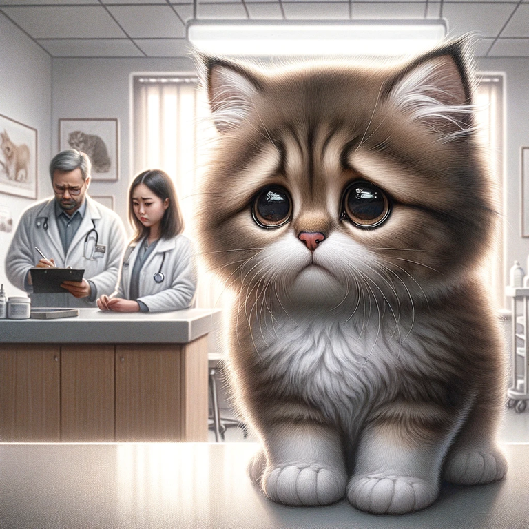 Je suis un petit chat, doux et câlin, perdu dans un monde où les géants en blouses blanches règnent. Autrefois joueur et espiègle, aujourd’hui, je me sens si faible, si fatigué. Mes ronronnements se sont tus, mon appétit s’est évanoui, et même le doux parfum de ma pâtée favorite ne m’attire plus. Dans cette grande maison aux murs froids, je rencontre des visages inconnus. Les secrétaires, avec leurs voix fortes et leurs mouvements brusques, me font peur. Je me recroqueville dans mon petit coin, cherchant un peu de chaleur, un peu d’amour, mais tout ce que je trouve, c’est l’indifférence. Pourtant, au fond de mon petit cœur de chat, je pardonne. Je sais qu’ils sont là pour m’aider, même s’ils semblent parfois si distants, si étranges. Dans leurs yeux, je cherche une lueur de tendresse, un signe qu’ils comprennent mon mal-être. Mais je me sens si seul, si incompris. Je rêve de caresses, de mots doux chuchotés à mon oreille, de cette main rassurante qui me dirait que tout ira bien. Mais ces moments sont rares, et je me retrouve souvent seul avec ma peine. Je suis juste un petit chat, un petit être vivant qui aspire à l’amour et à la douceur. Dans cet univers inconnu, j’espère qu’un jour, quelqu’un comprendra mon silence, mes yeux tristes, et me donnera cet amour dont j’ai tant besoin.